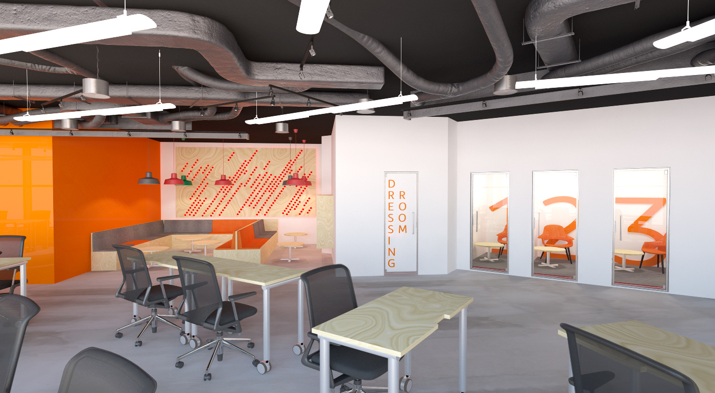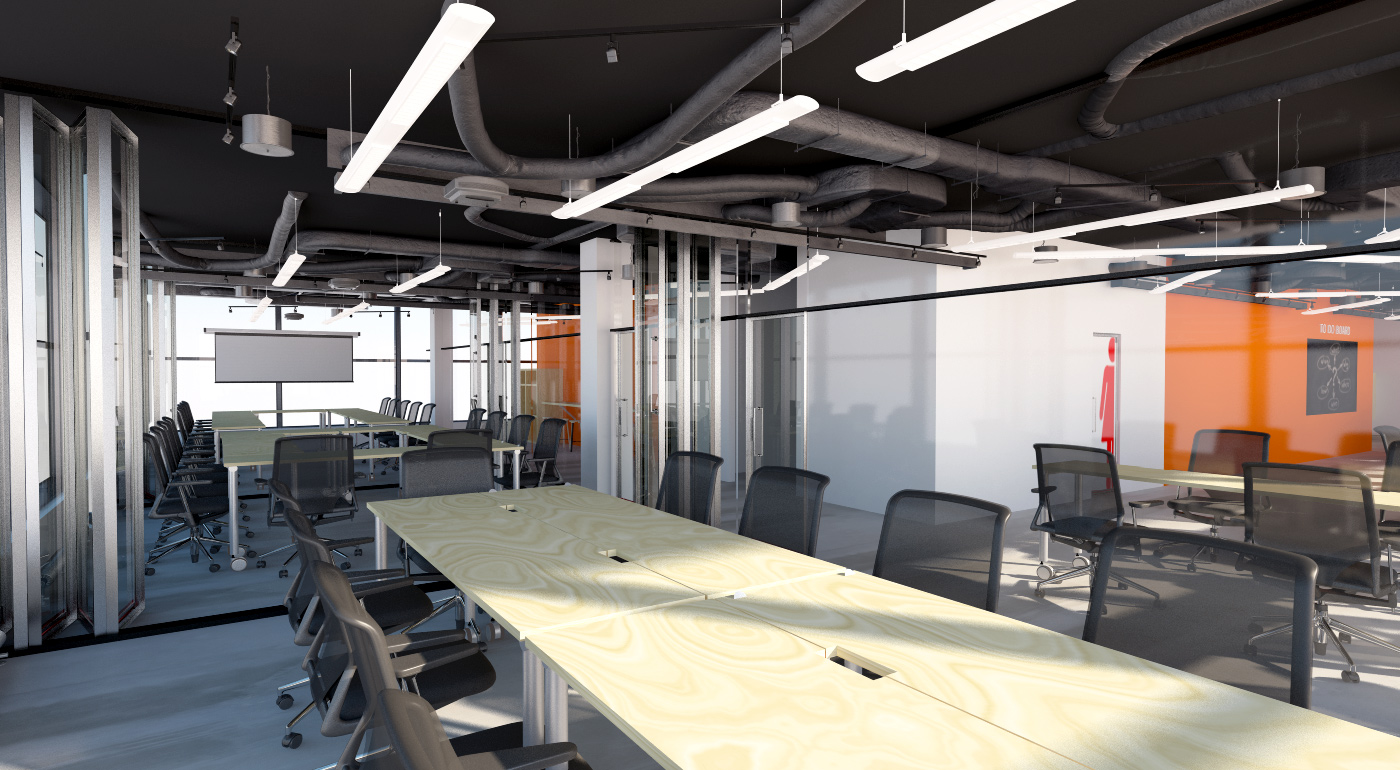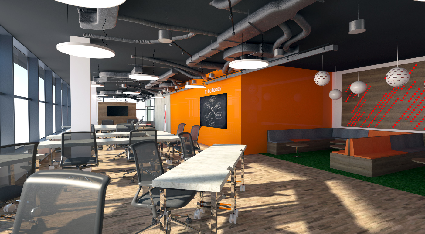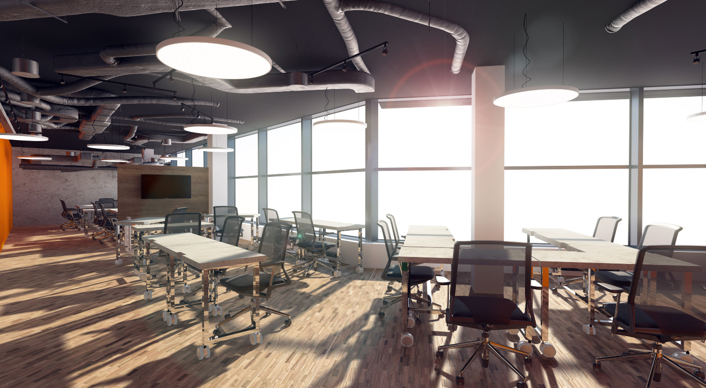 Industriální open space kancelář