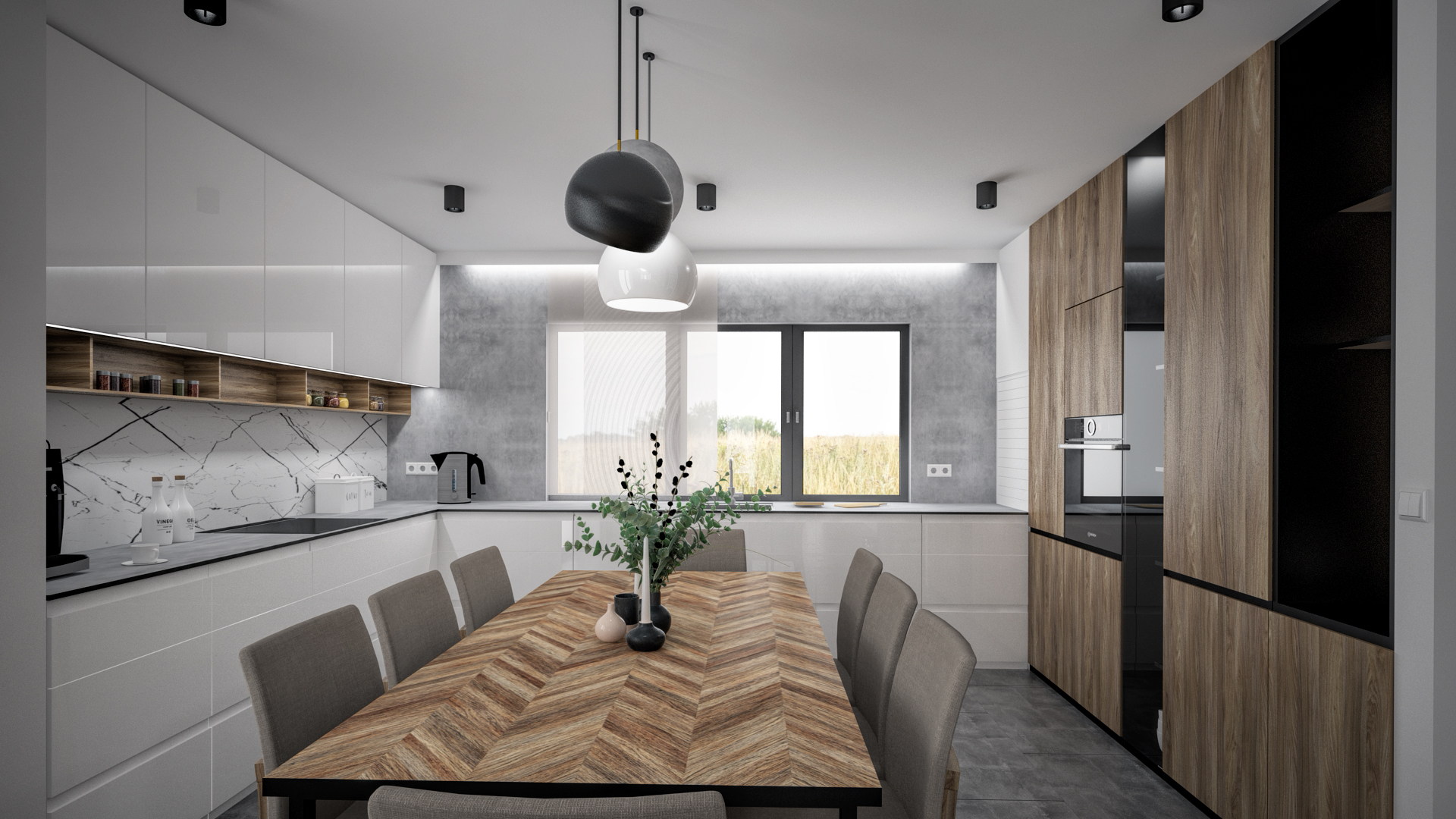 Kuchyně s jídelnou a obývákem