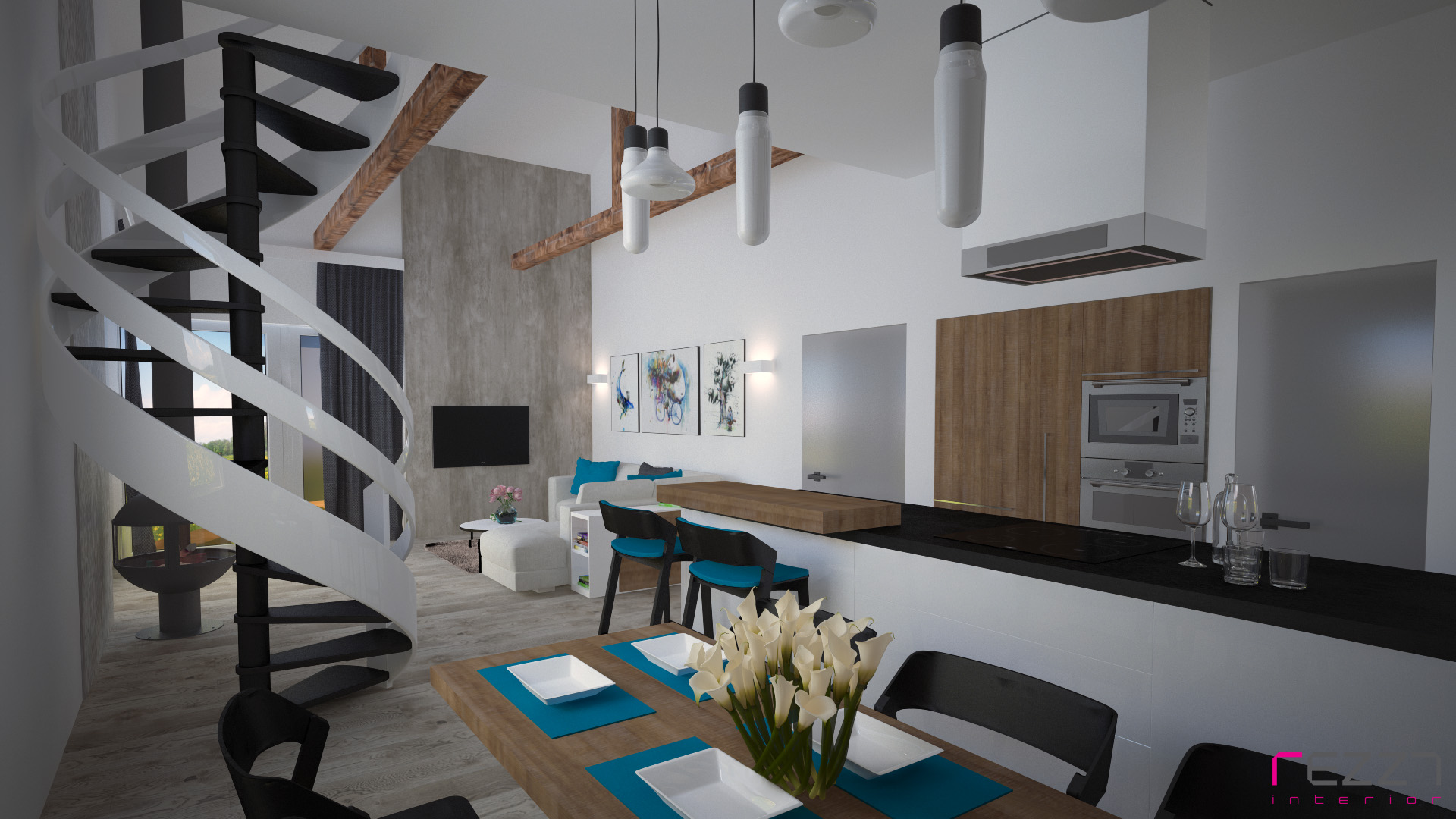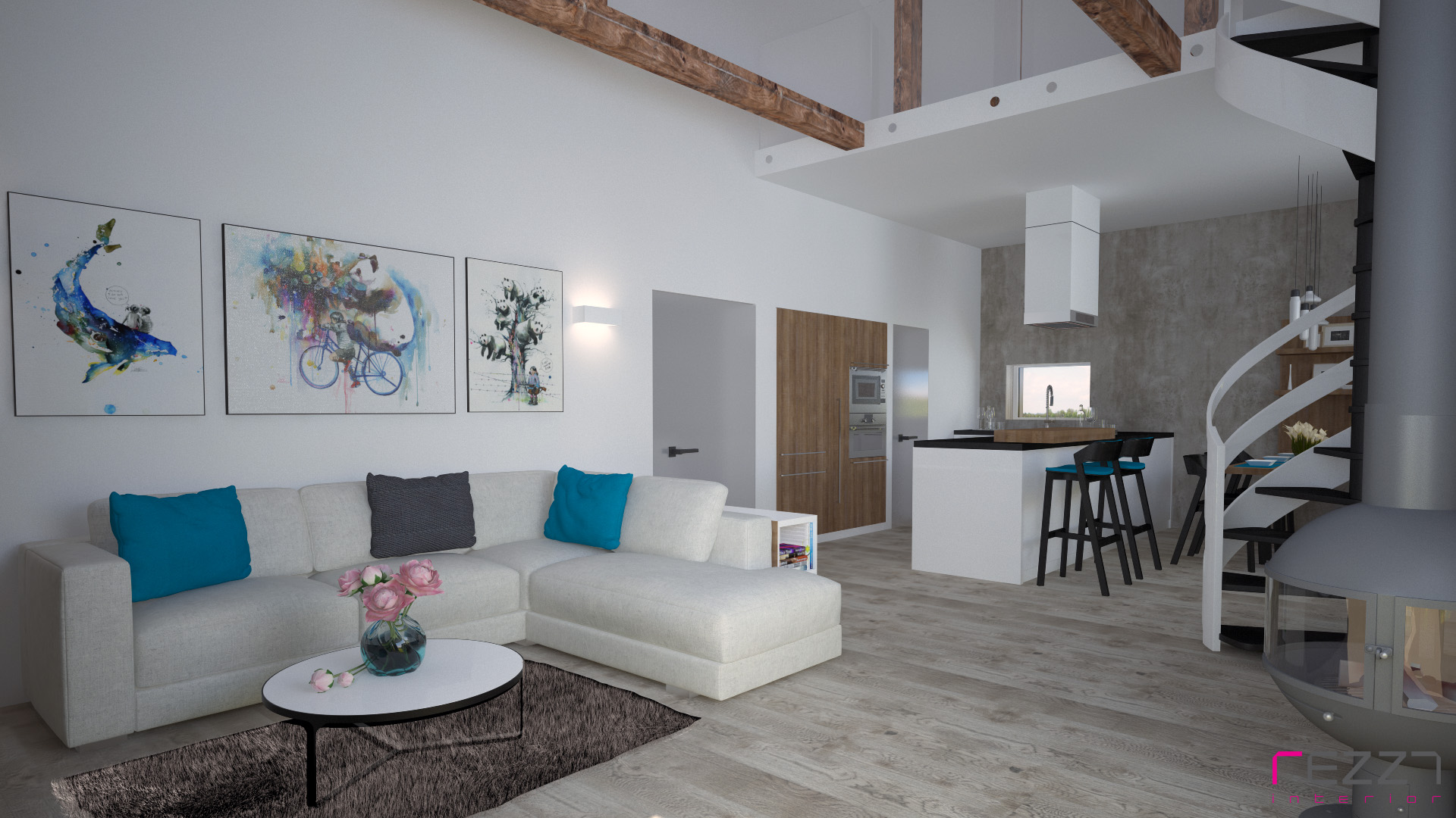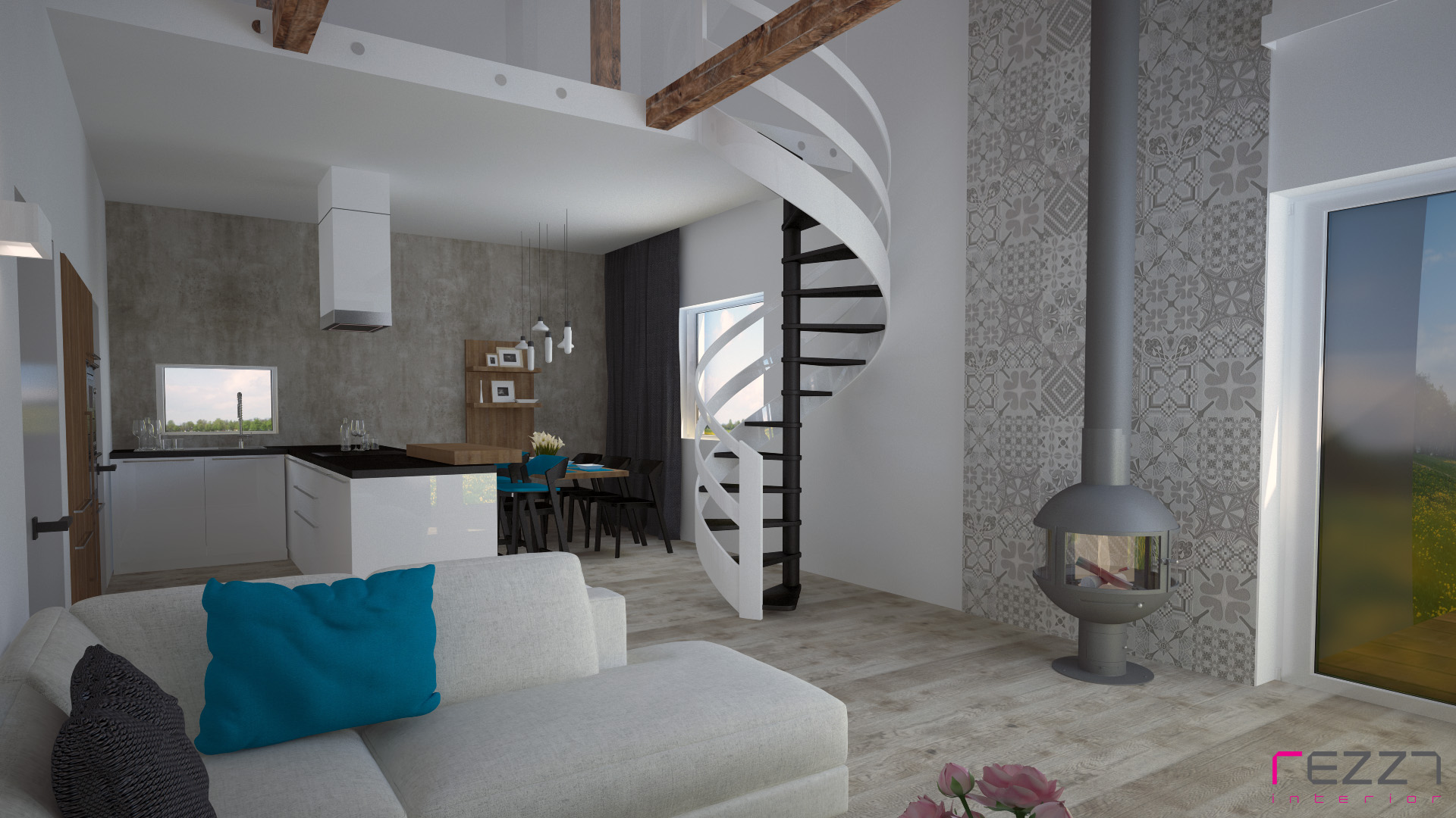 Návrh obývacího prostoru s kuchyní