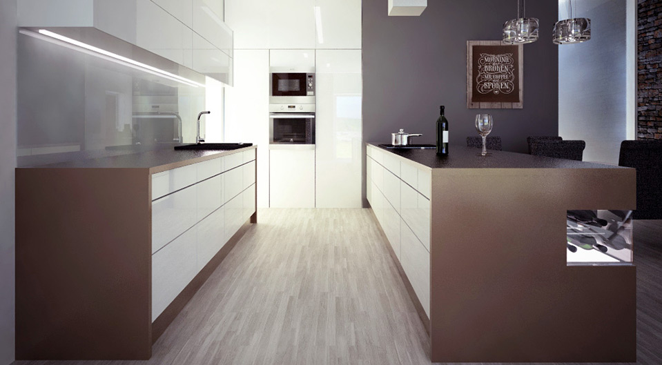 Kuchyňský ostůvek byla jasná volba. Rozdělili jsme tak odpočinkovou část a kuchyň s jídelnou. Do ostrůvku jsme vytvořili netradiční vinotéku, která kuchyni přidává na exkluzivitě. Sama kuchyň v sobě skrývá spoustu úložných prostor. Krb spolu s břidlicovou stěnou vytváří příjemné propojení teplého a útulného domova.
